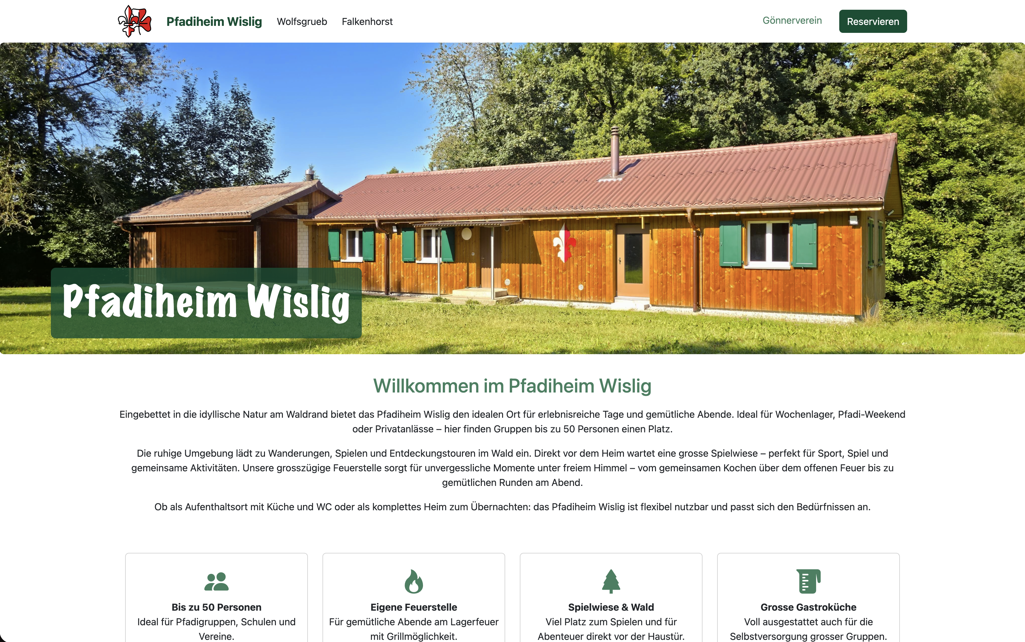 mietbaren Hütten und die Vereine dahinter vorstellt. Diese Homepage im klassischen Html und Css